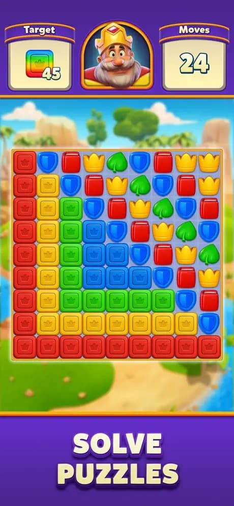 Welcome to Royal Match, the king of puzzle games! Swipe colors, solve match-3 puzzles and help King Robert decorate his castle. An exciting adventure is calling you!