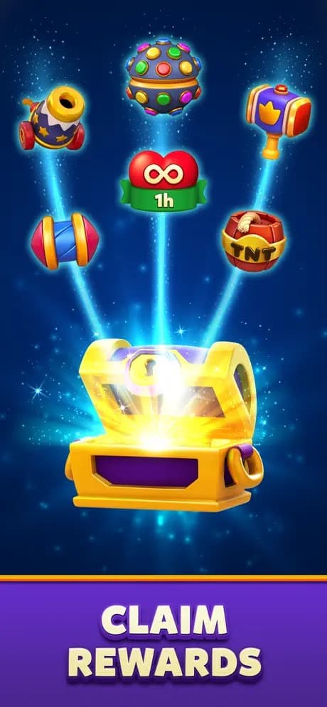 - Open amazing chests for a chance to win coins, boosters, unlimited life and power-ups!